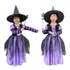 Fantasia de bruxa roxa infantil para Halloween cosplay meninas bruxa vampiro morcego capa terno brincadeira infantil