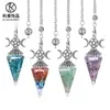 2122-Pêndulo de Pedras Naturais Coloridas Bronze Prata Dourado Resina Símbolo dos Sete Chakras Hexágono Cone Pêndulo