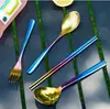 Palitos Garfo Colher de Titânio Puro Conjunto de Três Peças Portátil para Acampamento ao Ar Livre Espessado Antiescaldante Talheres Coloridos Colher Garfo Palitos Doméstico